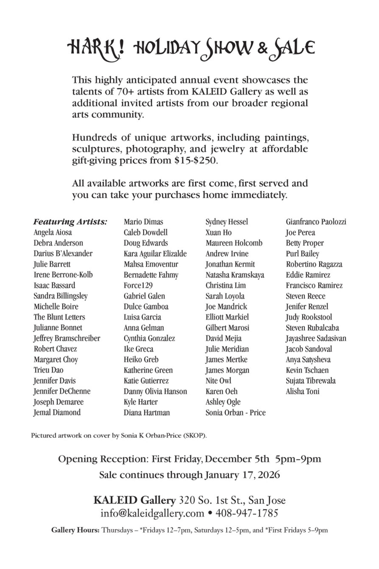 VIP reception: Saturday Dec. 17th (5pm-9pm)